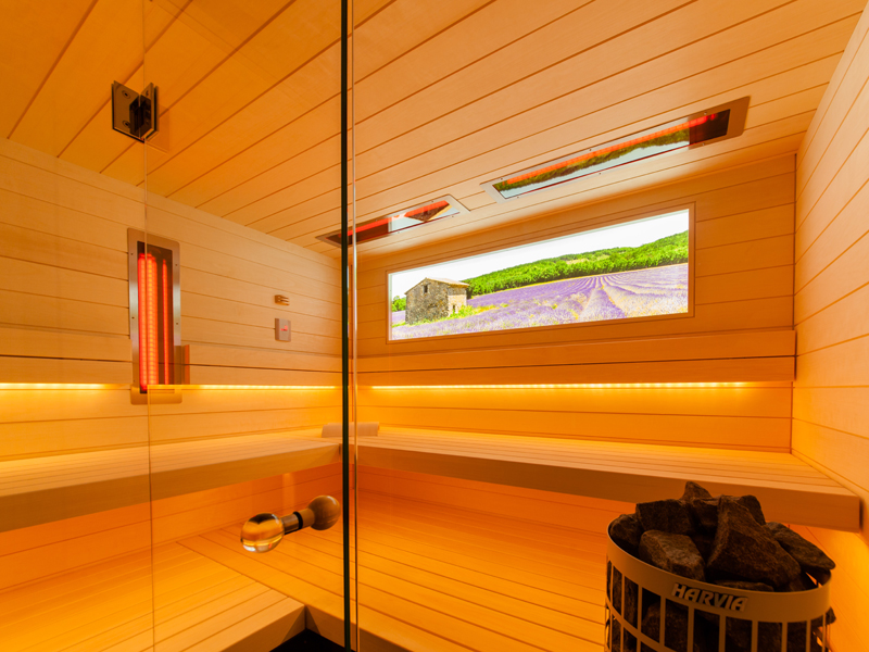 Dank ausgereifter Technik können die verschiedensten Infrarottechniken auch in einer Sauna integriert werden. Ihren individuellen Wünschen sind kaum Grenzen gesetzt. Wählen Sie die Kombination Finnische- oder Feuchtklima-Sauna mit Infrarot-Flächenheizpaneele und/oder INTENSIV 3 Infrarotstrahlung mit Tiefenwirkung. So erzielen Sie eine optimale Wirkung für Körper und Geist. Kombinieren Sie zwei Wellnesselemente für maximale Effektivität und Entspannung.