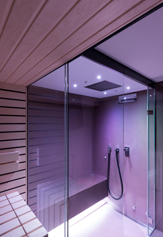 Bauherrschaft geniesst das Dampfbad, welches mit einer Regenbrause, Schwalldusche auch als Dusche genutzt wird. Ausgestattet ist die Dampfdusche zusätzlich mit Soundsystem, Sitzheizung, Farblicht und Sprühnebeldüsen. Durch die Verwendung von hochwertigen Komponenten steht das Dampfbad bereits nach 10 Minuten zum entspannen bereit und das Dampfbild bleibt während der gesamten Nutzung gleichmässig bestehen.
