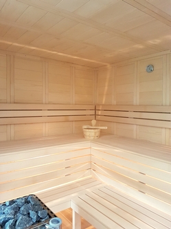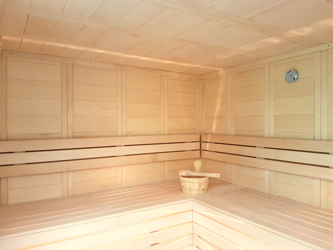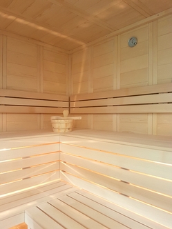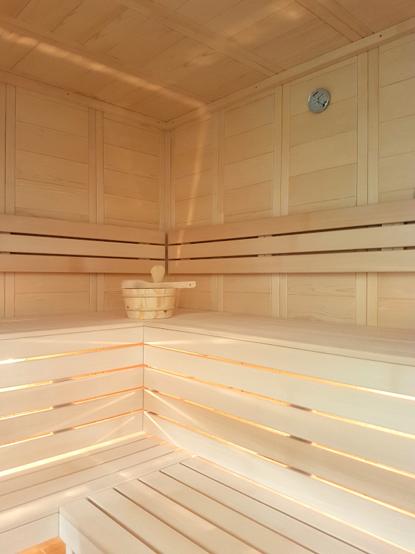 Die Massivholz verkörpert die ursprüngliche Form der Sauna. Die Grundkonstruktion der Massivholz-Sauna besteht bei dieser Sauna nur aus naturgewachsenem, massivem Holz der Fichte - hier die astfreie Fichte. Die Massivholzsauna zeichnet sich durch ein einmaliges wohliges Saunaklima aus. Die Massivholzsauna speichert die Wärme in großer Menge und sie gibt die Wärme langsam und gleichmäßig wieder abzugeben. Diese angenehme Wärme berührt weich und zart die Haut.
