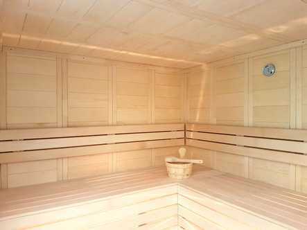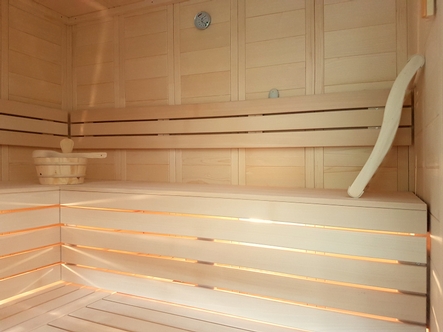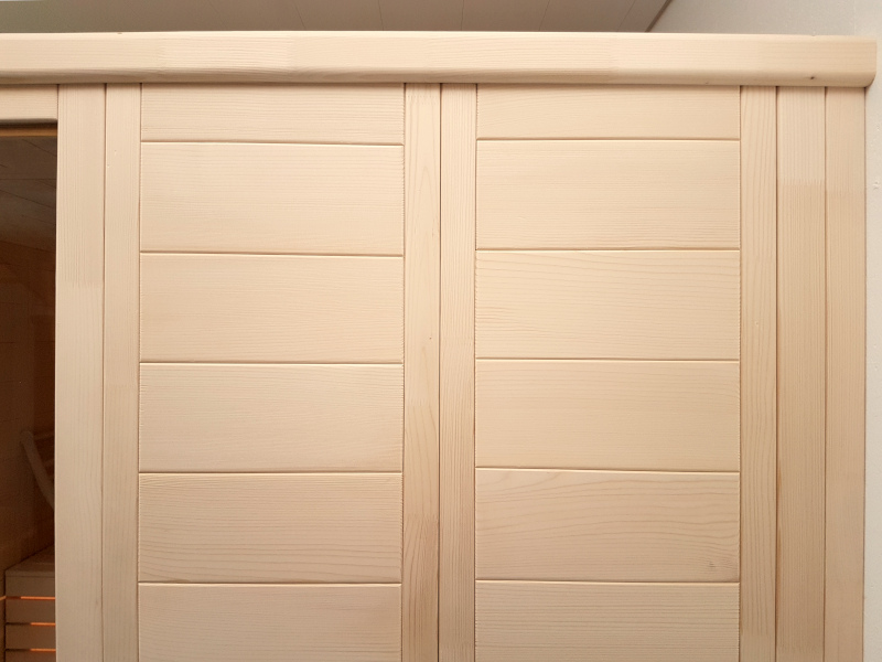 Die wichtigen Merkmale der Massivholz-Sauna liegen in der hohen Wärmespeicherung des Holzes, in einer stabilen gleichmässigen Temperaturschichtung, einem schonenden Abkühlen des Holzkörpers (kein Anfall von Kondenswasser) und - aufgrund der geringeren Oberflächentemperatur - in dem als weich und nicht aggressiv empfundenen Klima.