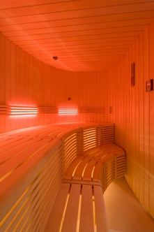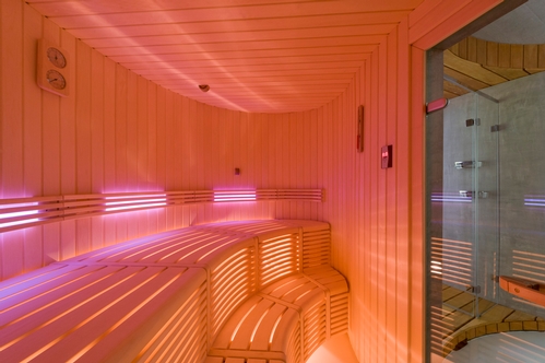 Die Saunakabine wurde ganz im Sinne des Bauherren in einer organisch, lebendigen Form designt und von uns, mit feinen Details, ausgeführt.