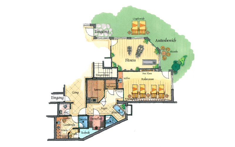 Die Sauna ist ein wichtiger Bestandteil im Wellnessbereich und sollte nicht fehlen. Zum Wellness-Genuss zählt man die Abwechslung zwischen heisser trockener Luft, dem Aufguss sowie dem Verdampfen von Wasser. Die anschliessende Abkühlung unter der kalten Schwalldusche gehört zum Wellness- und Spa-Genuss dazu.