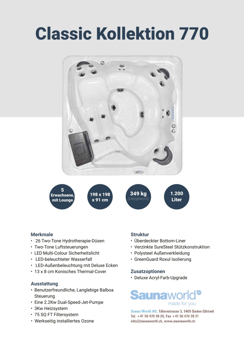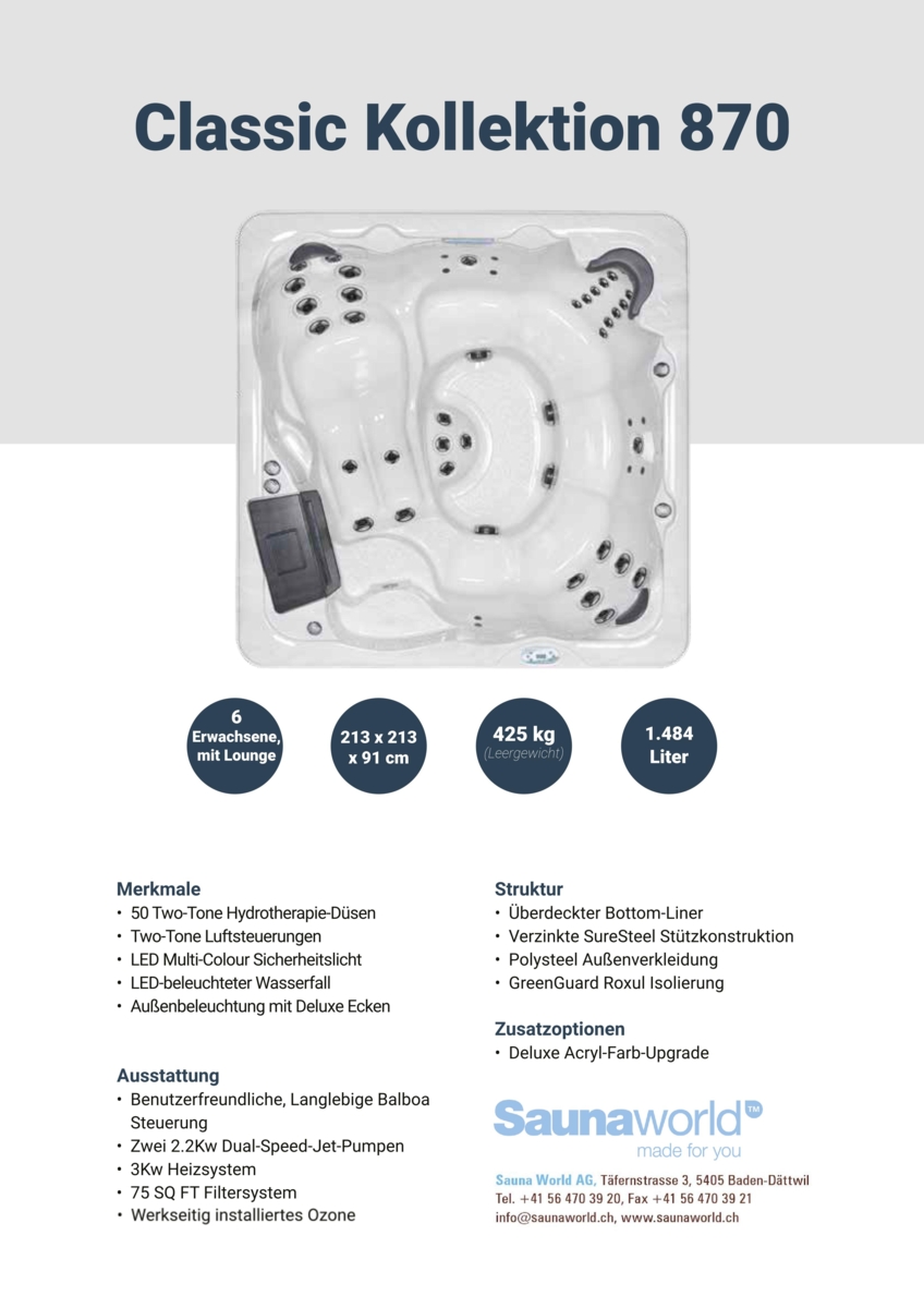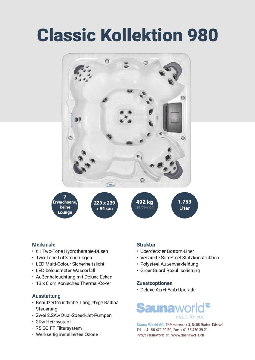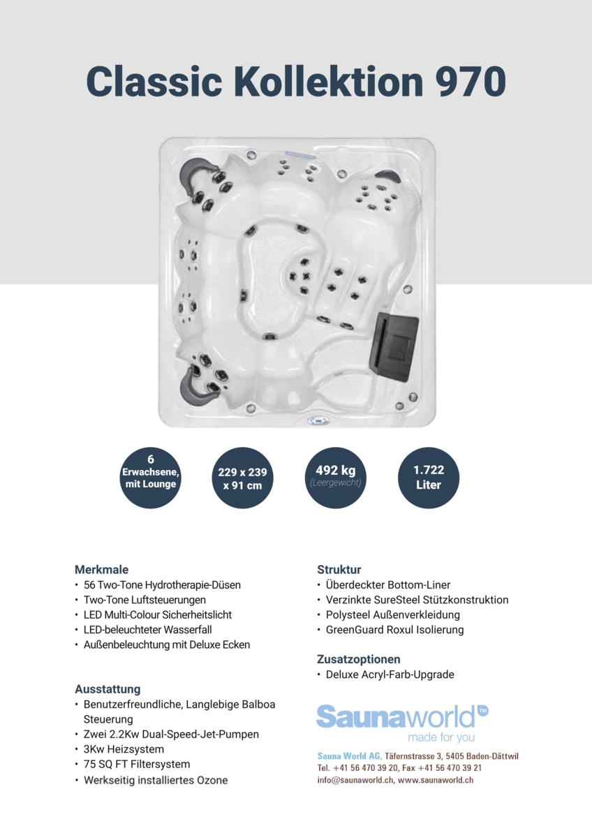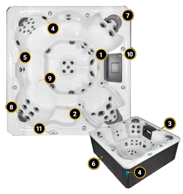 - Superior Geräuschabsorption macht die Whirpools zu den leisesten Whirlpools auf dem Markt.