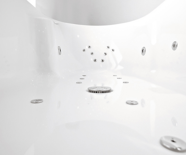Mit der elektronischen Steuerung regeln Sie das Whirlsystem stufenlos. Ein Desinfektionsprogramm ist automatisch mit integriert, einfaches Design zieren auf Knopfdruck. Mit Trockenblasautomatik aller Wasserleitungen.
