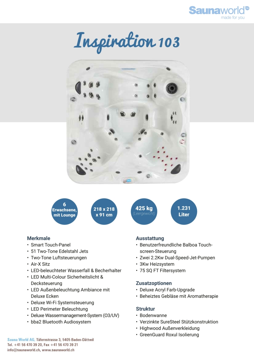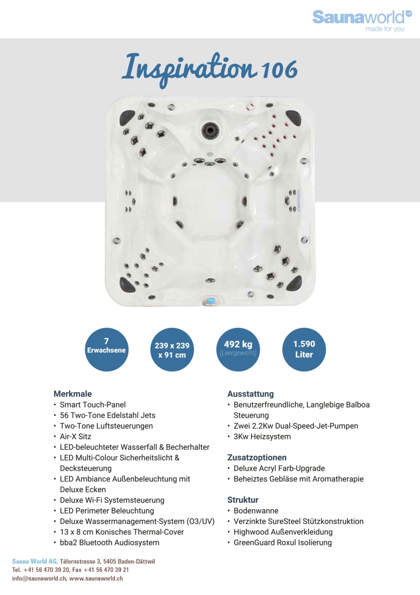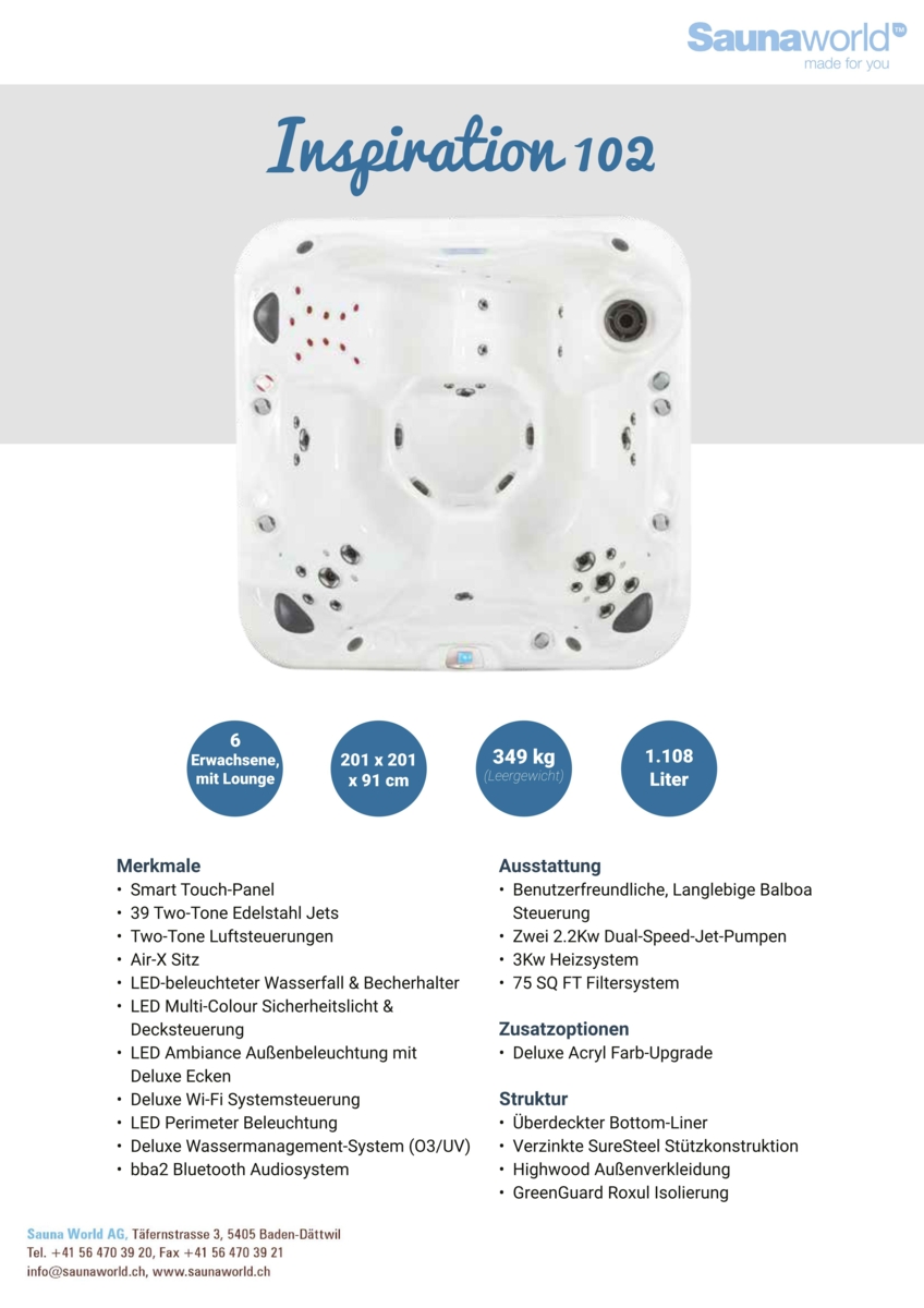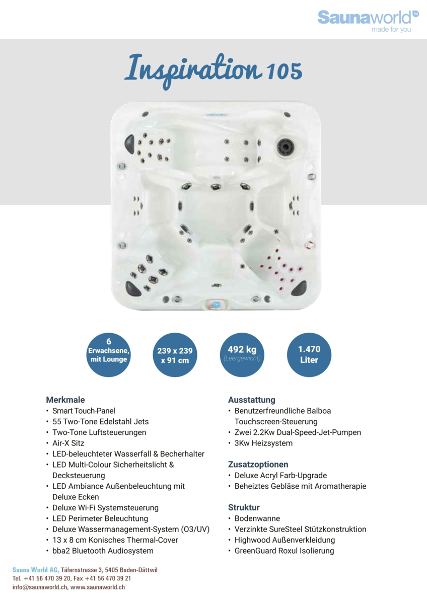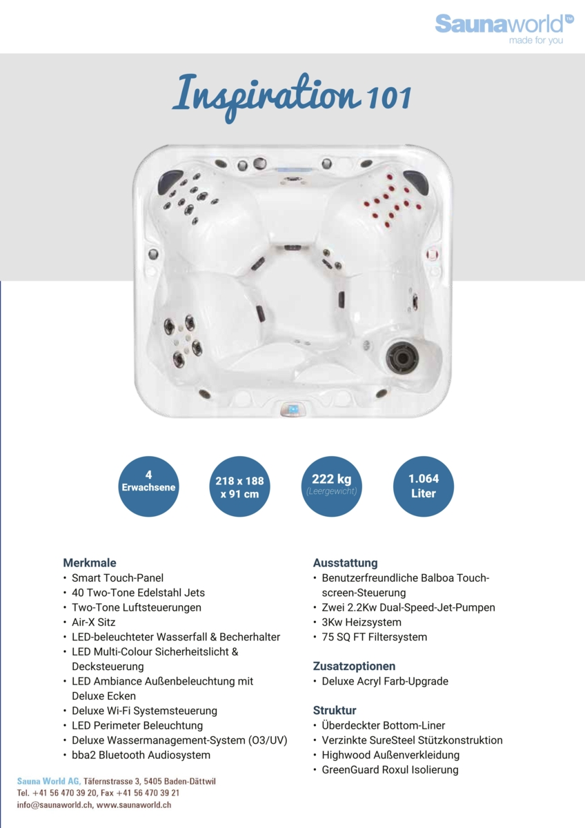 Obwohl viele Whirlpools ähnlich aussehen, sind sie nicht gleich gebaut. Während Ihrer Entdeckungsreise empfehlen wir Ihnen, sich selbst zu informieren und sowohl das Design als auch die Konstruktionstechniken eines Whirlpools von Inspiration zu vergleichen.